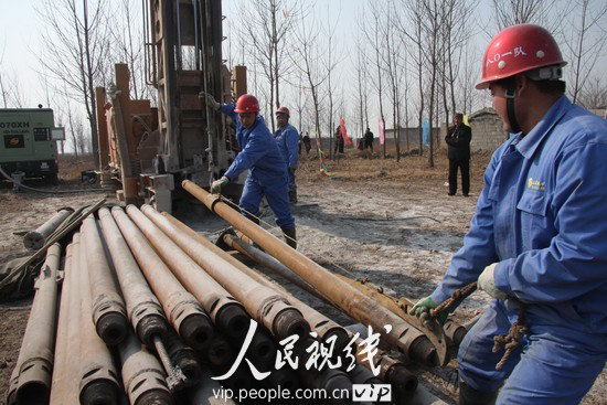 2月15日,全國國土資源系統抗旱找水打井行動啟動儀式在革命老區山東省臨沂市沂南縣啟動。按照國土資源部部署,四川、云南、貴州、黑龍江、江西、湖南、湖北、青海等8省和9個部直屬單位的精干地勘隊伍,將攜帶先進物探裝備和鉆井設備,對口支援山東、河南、河北、山西、安徽、江蘇、陜西、甘肅等8省抗旱找水打井工作。