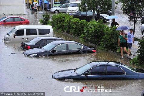 2011年6月28日,湖南省長沙市天心區書院路金盛布業市場淹沒在水中。當天中午,長沙上空電閃雷鳴,如瀑大雨傾瀉而下,致使城區部分地段積水嚴重,交通陷入混亂狀態。
