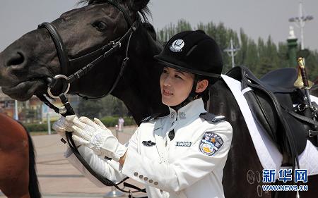 包頭市公安局蒙古族女騎警巴音娜和她的愛馬在一起