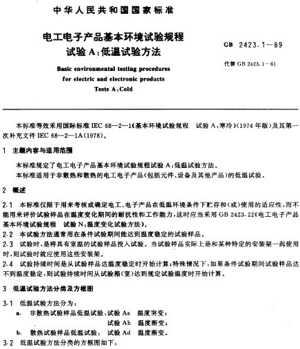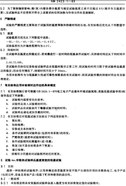 GB2423.2-89電子電工試驗規(guī)程低溫試驗方法