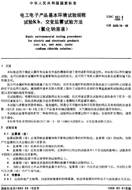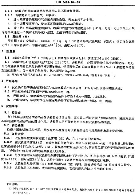 > GB 2423.18-85電子電工產品試驗規程交變鹽霧試驗方法