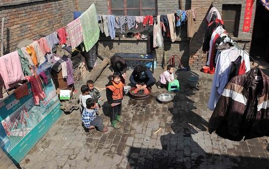 李艷萍在為孩子們洗衣服,這是她每天必做的“功課”。李艷萍1964年出生于山西省汾陽(yáng)市牧莊村,21歲那年嫁給孝義市瑤圃村村民任學(xué)功為妻。從外表看來(lái),李艷萍看起來(lái)顯得很憔悴,這是十幾個(gè)孩子吃喝拉撒在她身上留下的印記。李艷萍家的院子里到處曬滿了大大小小的衣服,顯示著這座狹小的農(nóng)家院落的與眾不同。