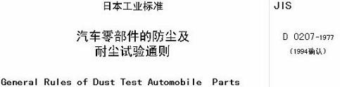 JIS D 0207-1997 汽車零部件的防塵及耐塵試驗通則解說