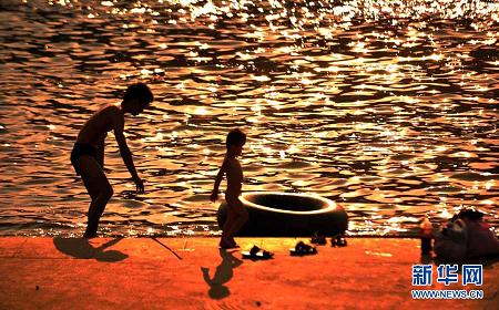 2010年8月4日 “光陰”的故事:40度高溫下的長沙生活剪影 湘江邊的泳者(8月4日攝)。當日,湖南省會長沙最高溫度達到40℃ ,為今年入夏以來的最高氣溫,湖南省氣象臺已發布今年首個高溫紅色預警信號.
